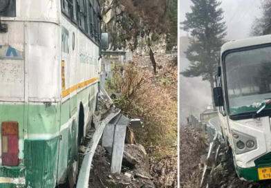 हवा में लटकी यात्रियों से भरी HRTC बस- पहाड़ी से गिरा मलबा